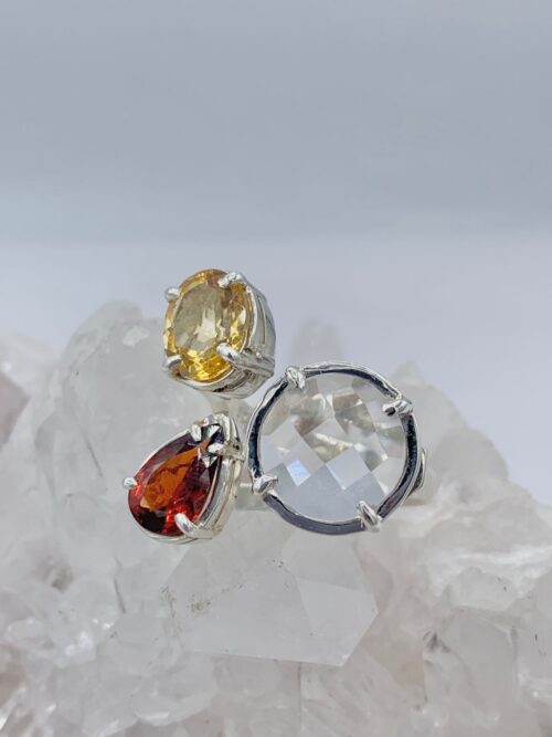 Anillo multipiedras Citrino, Granate y Cuarzo Transparente colección llénate de color