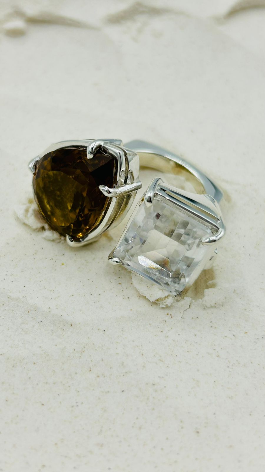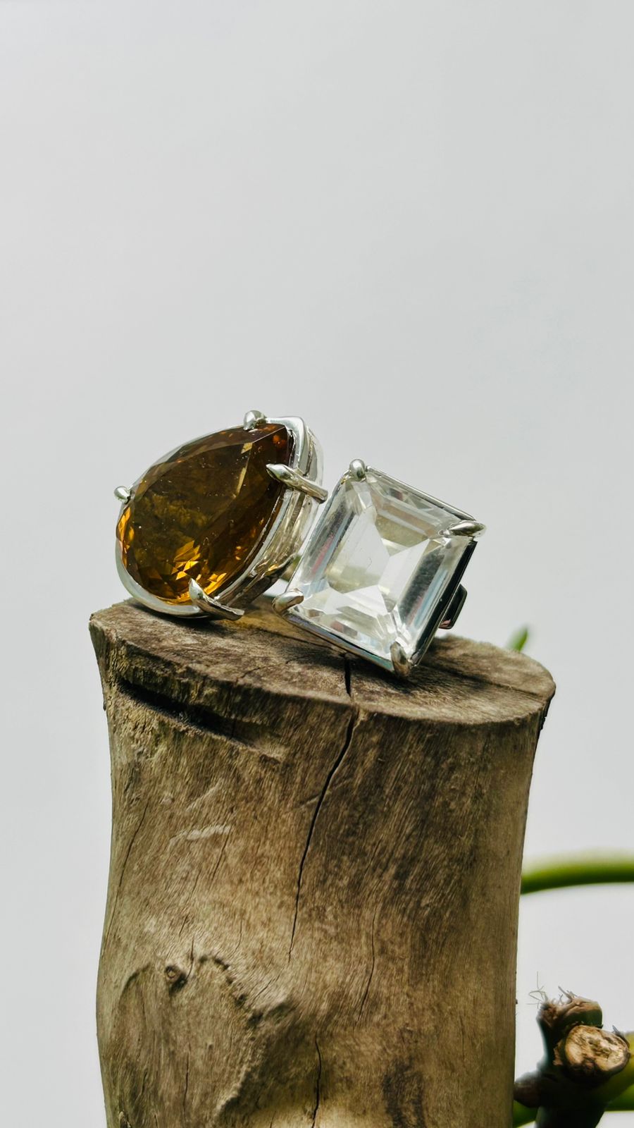 Anillo Doble Citrino Cuarzo Trasparente