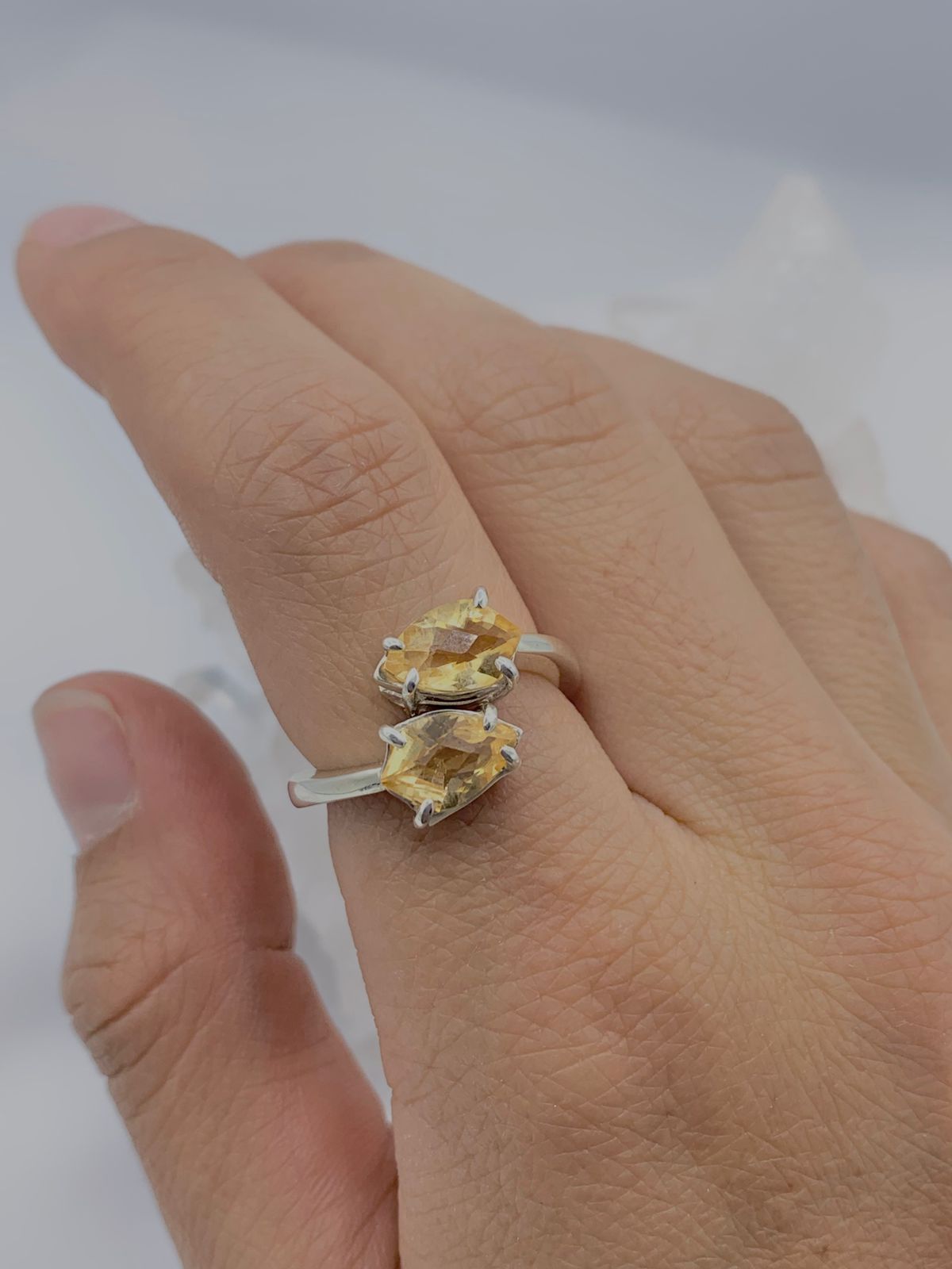 Anillo doble Citrino de 8 mm de alto * 5 mm de ancho  aproximadamente en plata 925