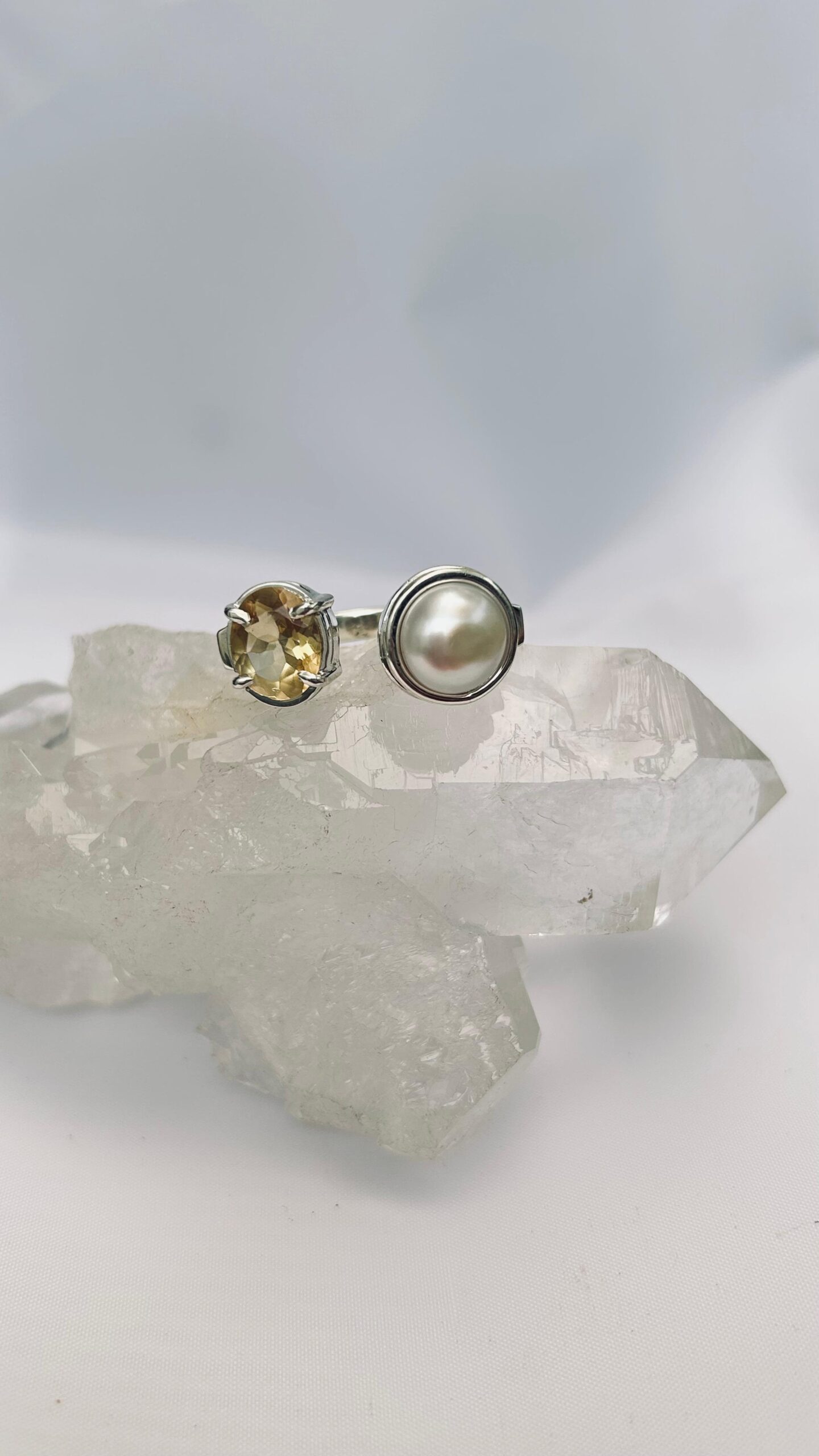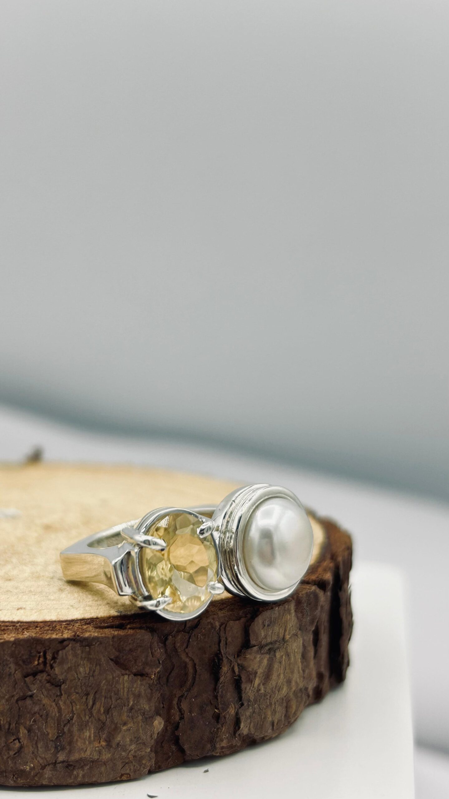 Anillo Doble Citrino y Perla Mediano Colección Armonía Dual